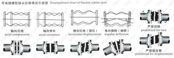 四、連接撓性單球體橡膠接頭與管道時,請注意正確的尺寸及中心位置,勿施加任何不必要的外力,如壓力、張力、扭轉力等。