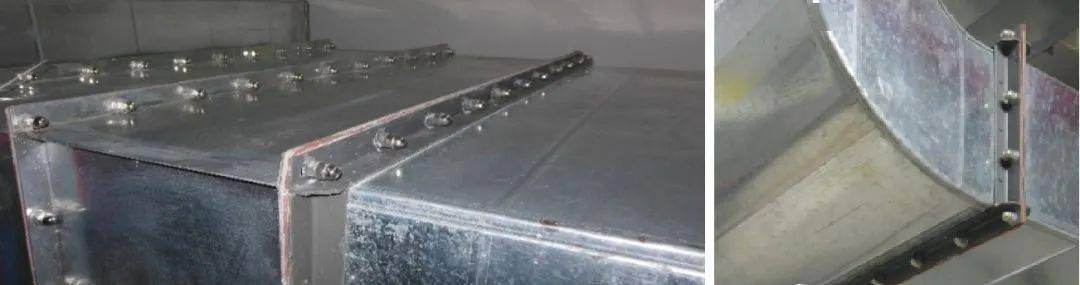 2)風管法蘭四角處內(nèi)外側(cè)涂抹密封膠密封;
